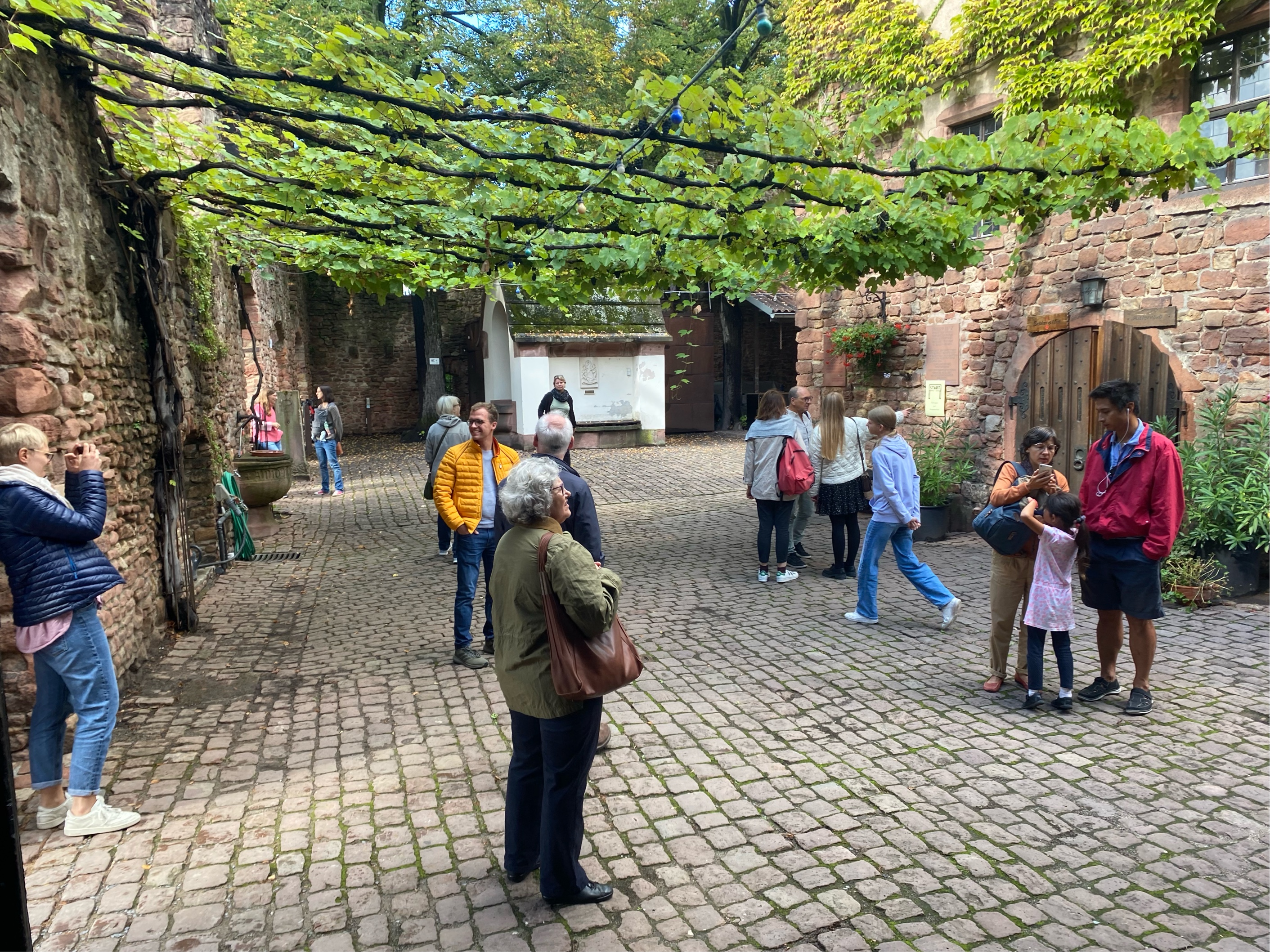 Fast 700 Besucherinnen und Besucher haben dieses Jahr bei pünktlich einsetzendem Sonnenschein den Weg in die Tiefburg anlässlich des Tags des offenen Denkmals gefunden, darunter ganz viele Kinder, die in Gruppenbegleitung oder individuell mit ihren Eltern die Burg erkundeten. Dabei hat war ihnen das Büchlein "Mit Hans und Barbara in Handschuhsheims Mittelalter" zur Hand, das Sie mit einer Reihe von altersgerechten Aufgaben durch die Burg und anschließend auch in die St.-Vitus-Kirche leitete. Nach erfolgreichem Parcour war ihnen damit der Spürnasen-Pass sicher.
