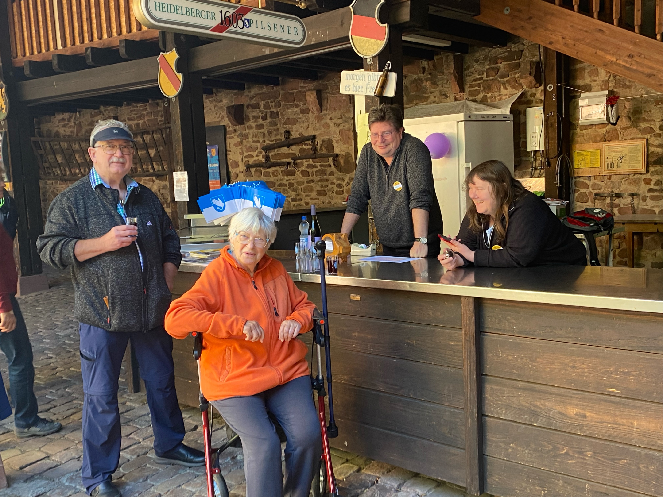 Auch aufgrund des großen Erwachsenenandrangs auf die angebotenen Führungen schob Gästeführerin Beverley Mühlbauer noch eine zusätzliche Führung nach. Aber auch alle anderen Besucher durften in spontanen kleinen Führungen in die Geschichte Handschuhsheims eintauchen und bekamen von Vorstandsmitgliedern des Vereins auch ansonsten geschlossene Räume gezeigt. Dabei bildete natürlich der gruselige Kellerraum mit dem eingemauerten Ritter für Alt und Jung das Highlight.